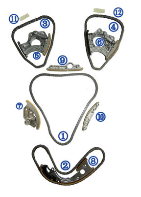 1. Ολόκληρη εξάρτηση αλυσίδων Timng, αλυσίδα συγχρονισμού, Tensioner, ράγα οδηγών, αλυσσοτροχός, έκκεντρο phaser (VVT)